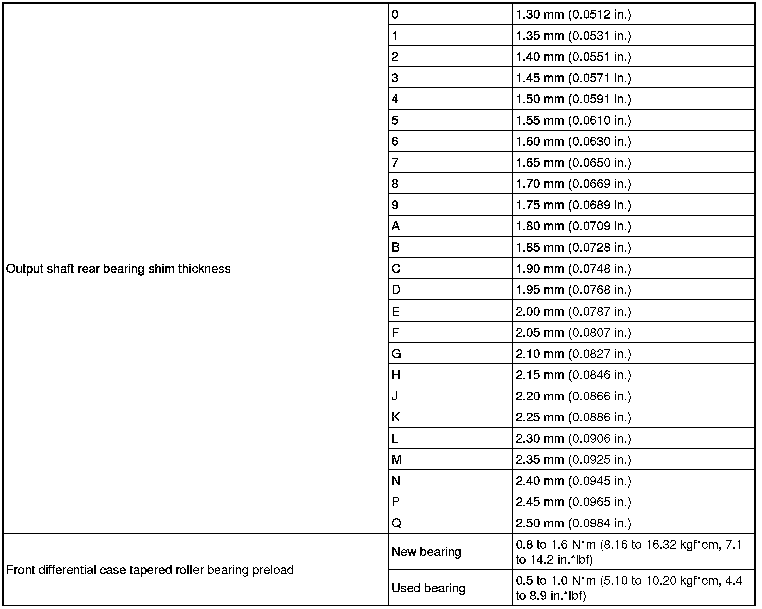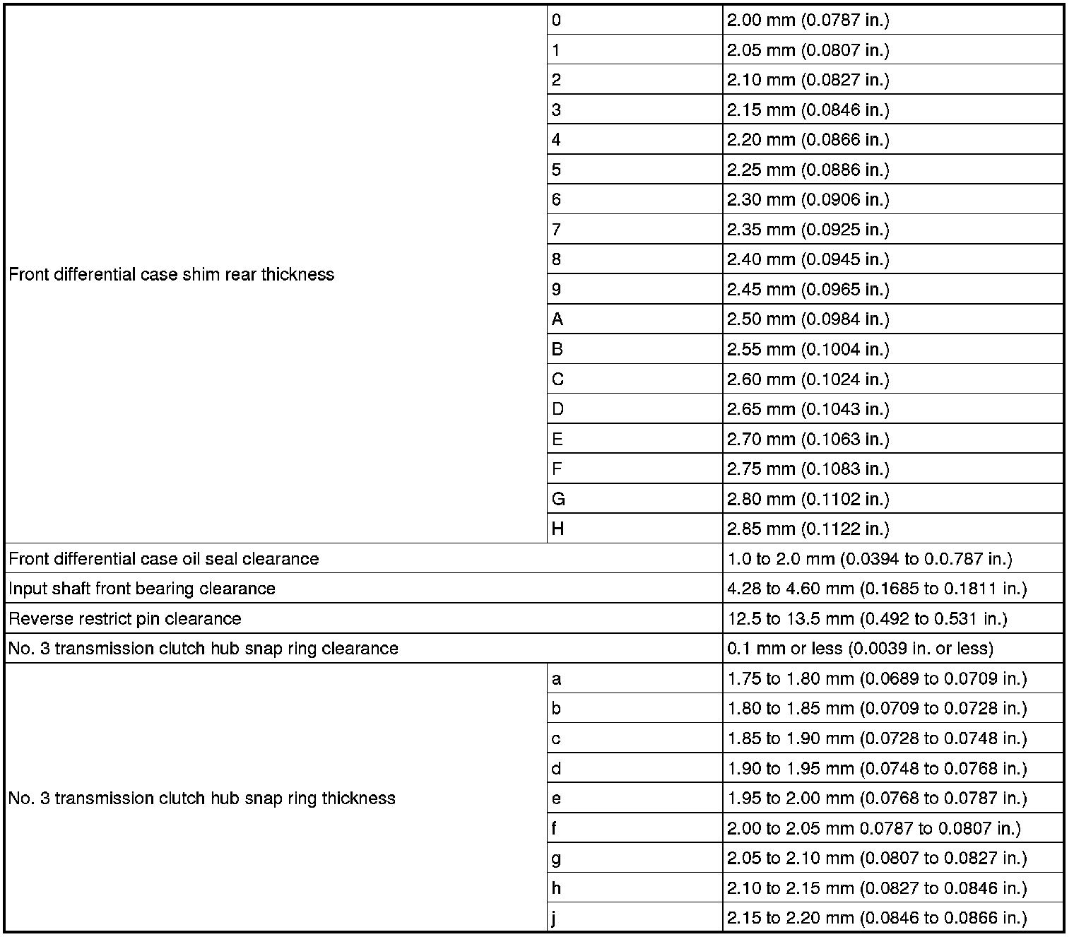 SERVICE SPECIFICATIONS: E351 MANUAL TRANSAXLE: