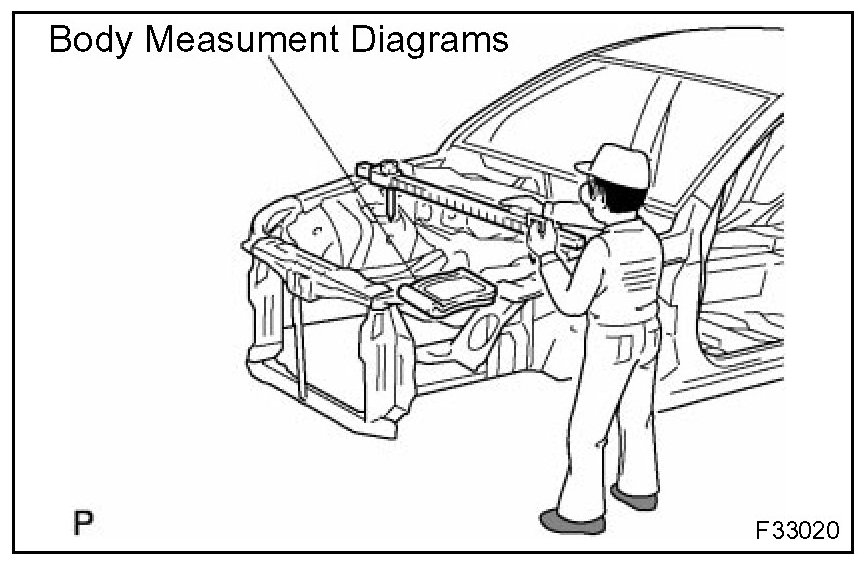 1. Before removal or cutting operations, take measurements in accordance with the dimensions diagram. Always use a puller to straighten a damaged body or frame.