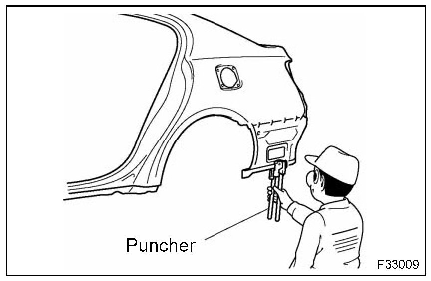 1. For areas where a spot welder cannot be used, use a puncher or drill to make holes for plug welding.