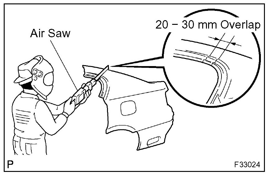 1. For joint areas, rough cut the new parts, leaving 20 - 30 mm (0.79 - 1.18 in.) of overlap.
