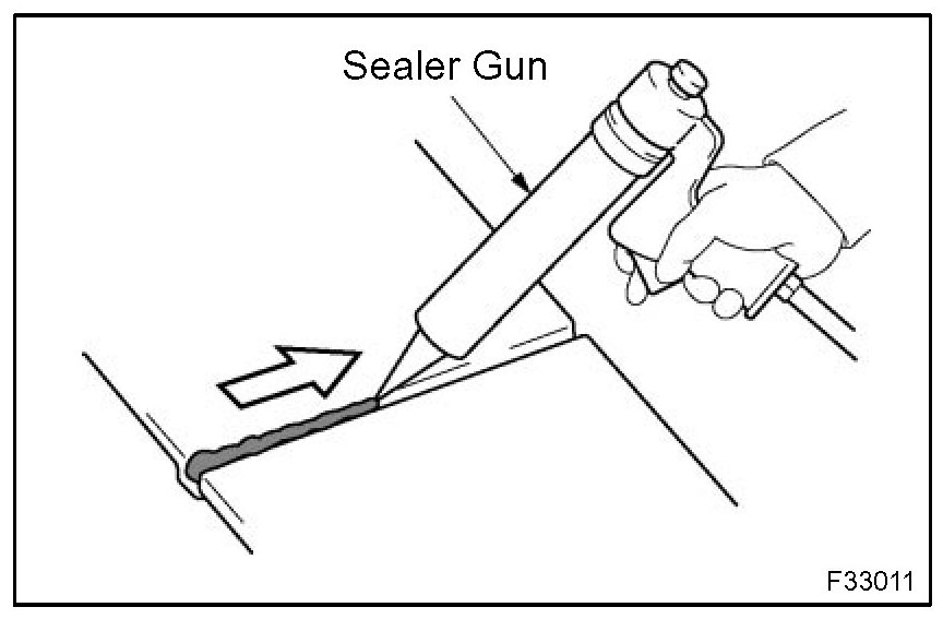 1. For water-proofing and anti-corrosion measures, always apply the body sealer to the body panel seams and hems of the doors, hood, etc.