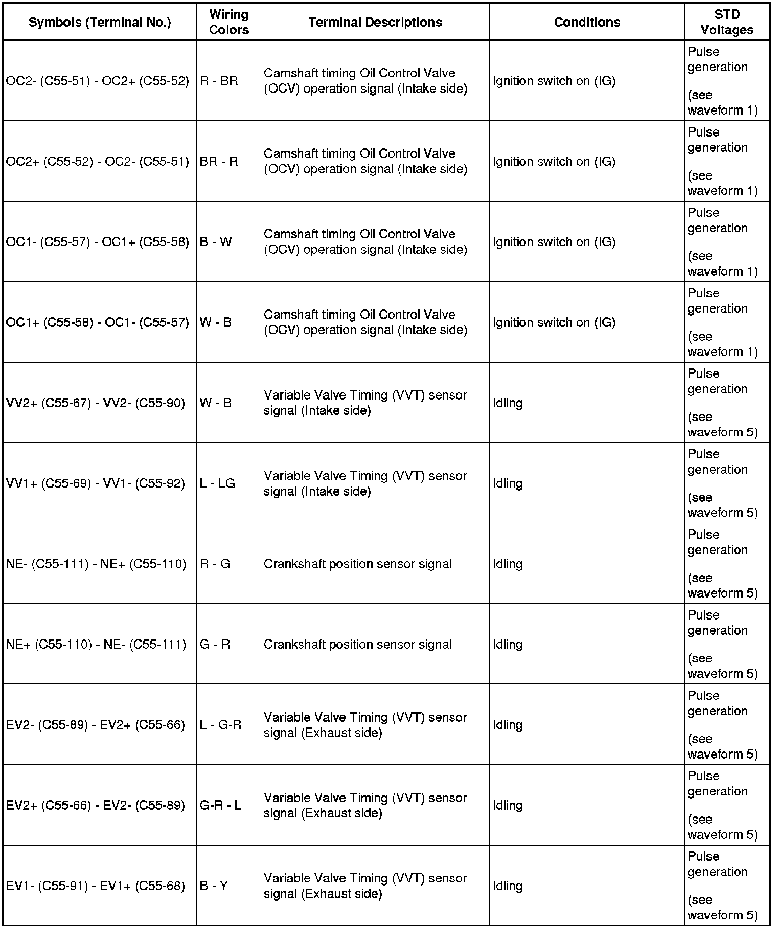 (1) Variable Valve Timing (VVT) sensor signal (1)