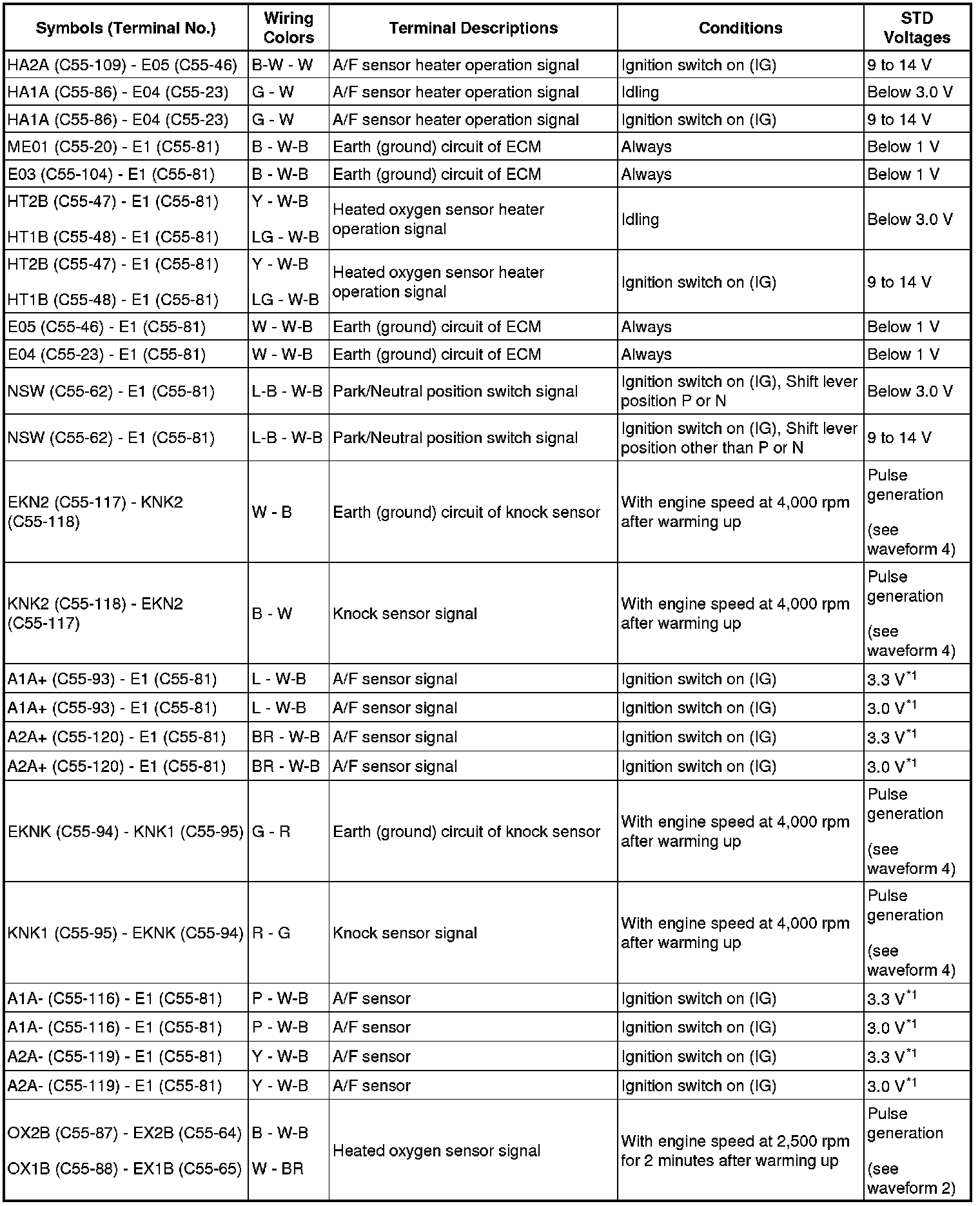 - Depending on the vehicle, the output waveform voltage may rise to 12 V if influenced by optionally installed systems.