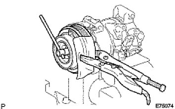 (d) Using a snap ring expander, remove the snap ring and then remove the magnetic clutch rotor.