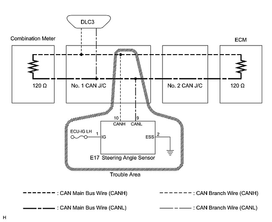 1. CHECK OPEN IN CAN BUS WIRE (STEERING ANGLE SENSOR BRANCH WIRE)