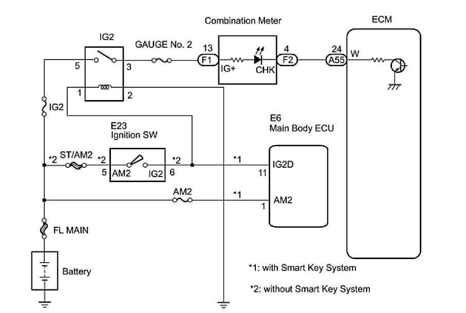 The MIL (Malfunction Indicator Lamp) is used to indicate vehicle malfunctions detected by the ECM. When the ignition switch is turned on (IG), power is supplied to the MIL circuit, and the ECM provides the circuit ground which illuminates the MIL.