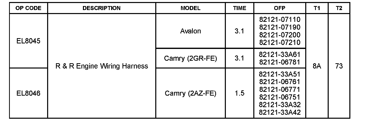 It is necessary to remove the intake manifold surge tank to access the engine wire harness on 2GR-FE vehicles. The intake manifold should be removed on 2AZ-FE engines.