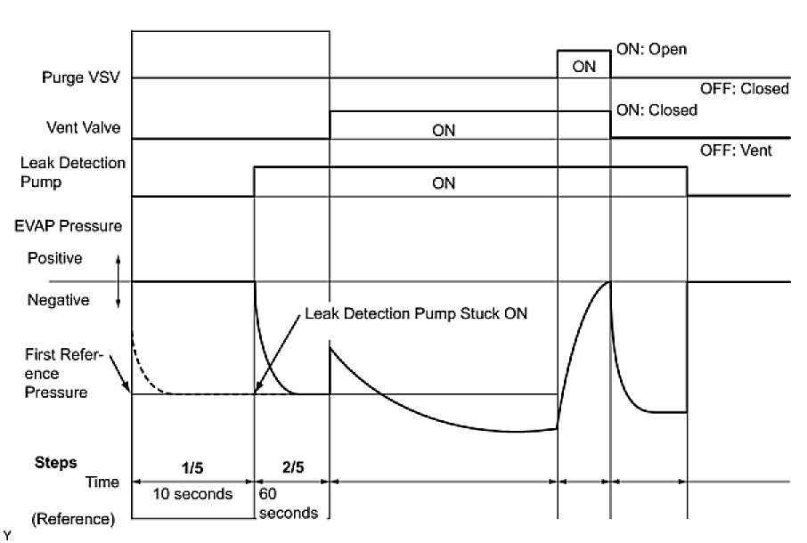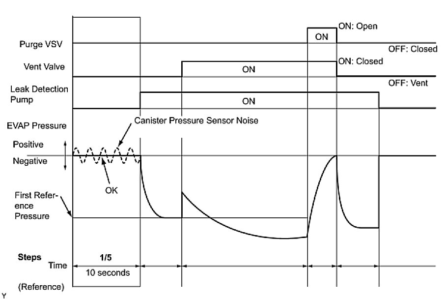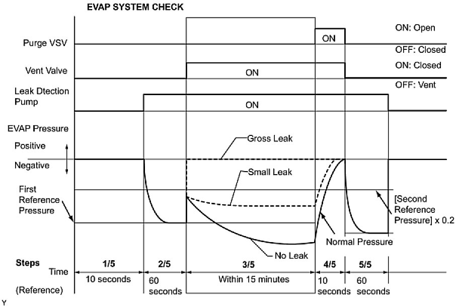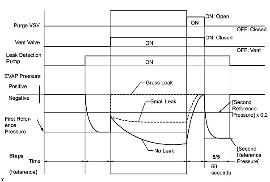 (b) Compare the EVAP pressure in step 3/5 and the second reference pressure (step 5/5).