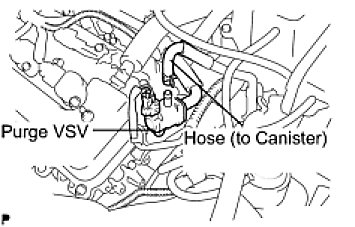 (b) Disconnect the hose (connected to the canister) from the purge VSV.