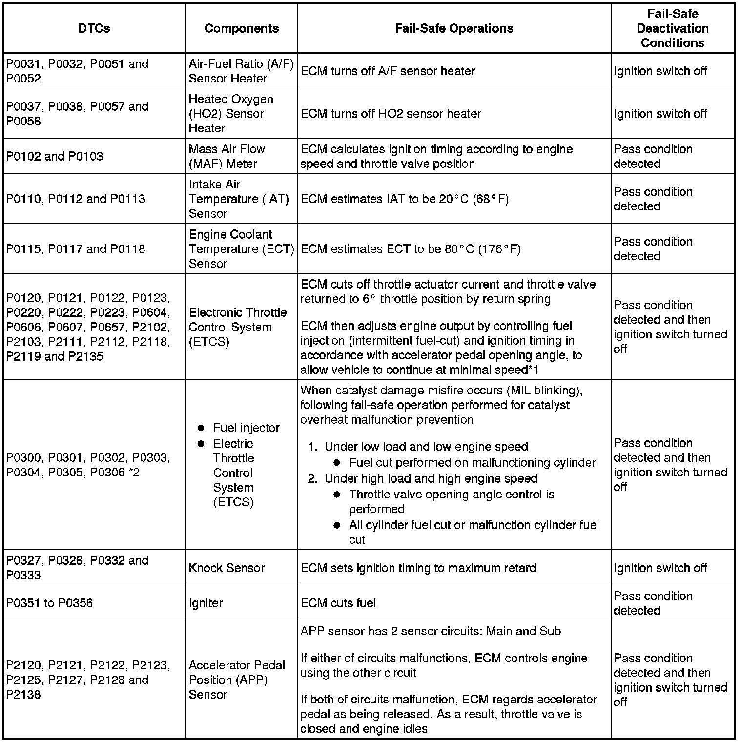 - *2: Misfire related fail-safe operations occur when catalyst overheat malfunction occur.