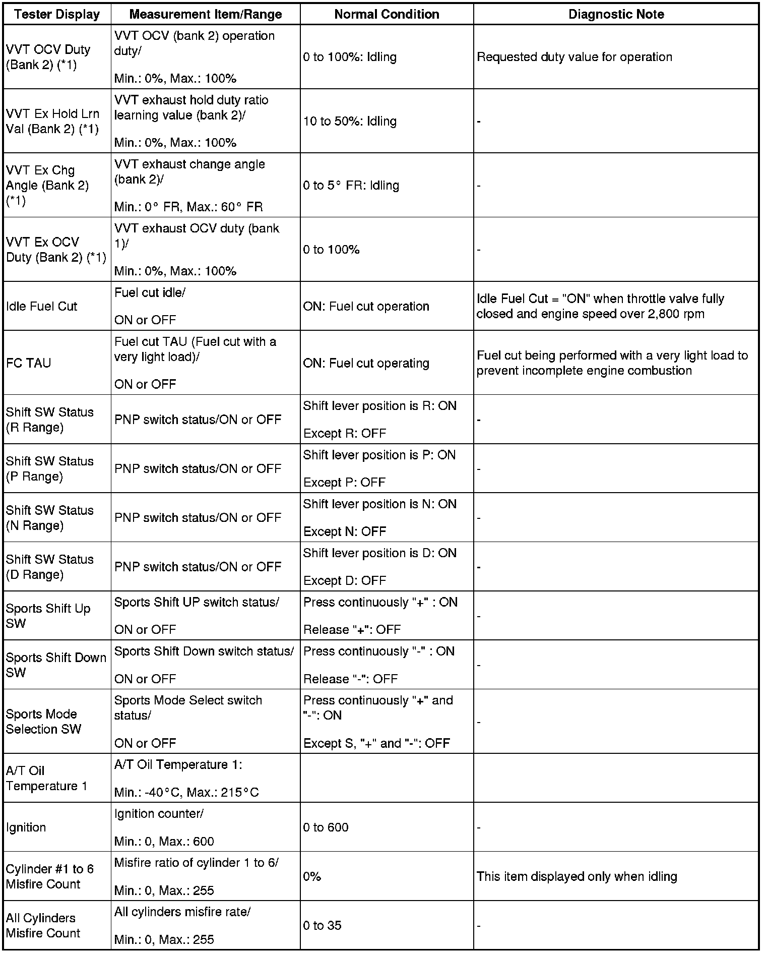 - *1: Data List values are displayed only when performing the following Active Test: Control the VVT Linear (Bank 1 or Bank 2) or Control the VVT Exhaust Linear (Bank 1 or Bank 2). For other Active Test, the Data List value will be 0.
