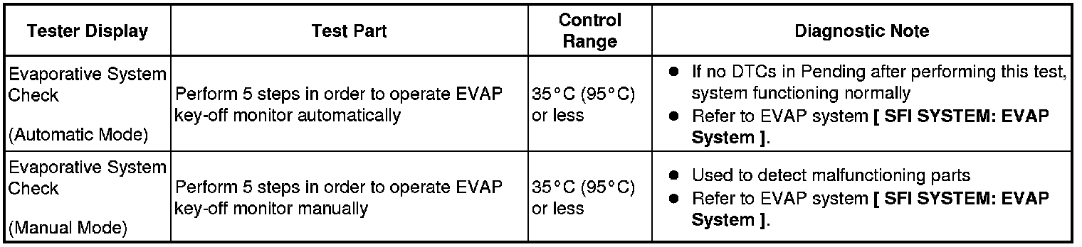 (e) Perform the System Check by referring to the table below.
