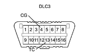 (6) Disconnect terminals 13 (TC) and 4 (CG) of the DLC3.