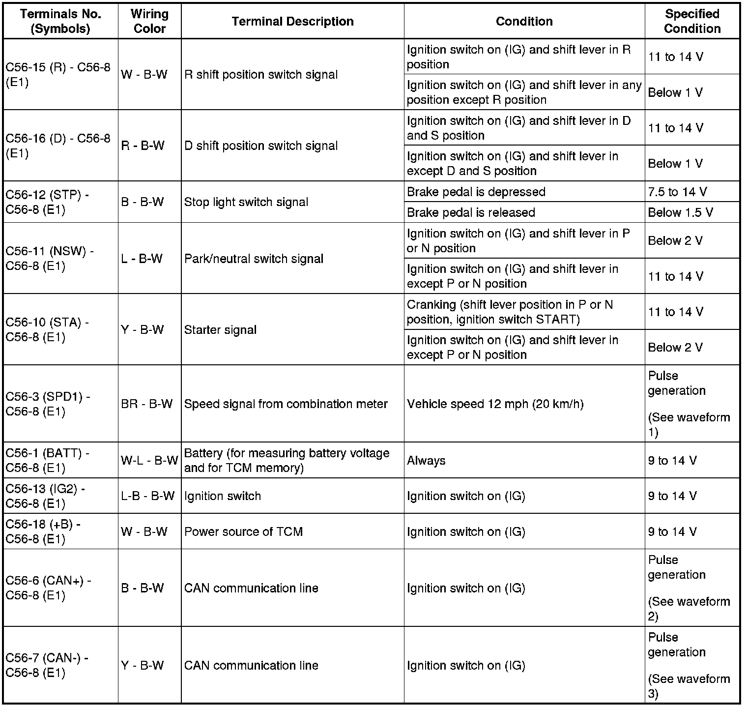 HINT: Each TCM terminal's standard voltage is shown in the table below.
