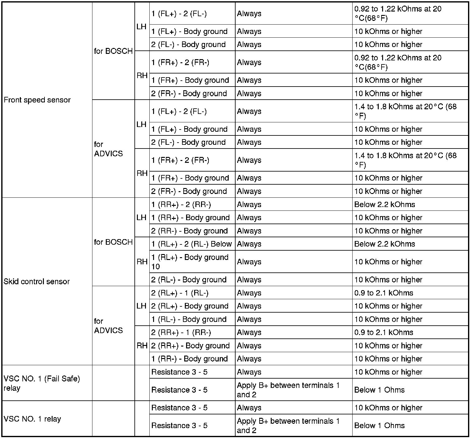 SERVICE SPECIFICATIONS: BRAKE CONTROL:
