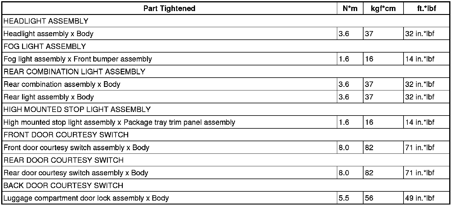 TORQUE SPECIFICATIONS