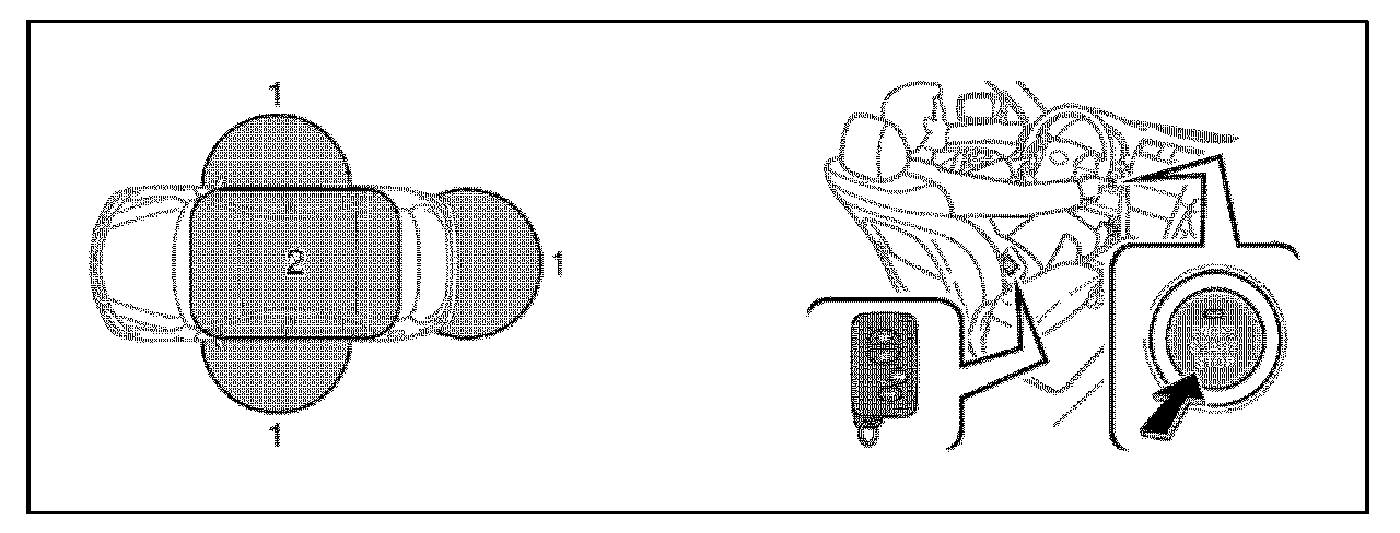 Registered Smart Key must be in actuation area No. 1 for this check (see illustrations).