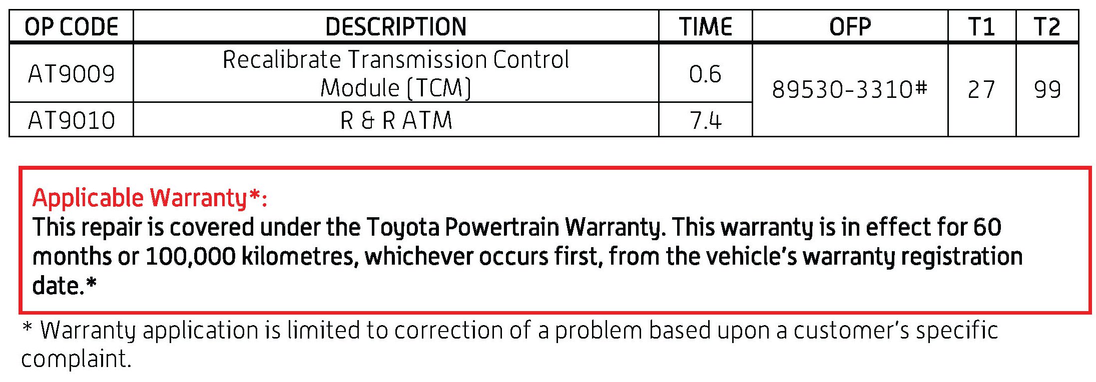 Canada - A/T Controls - TCM Update For Shift Improvements