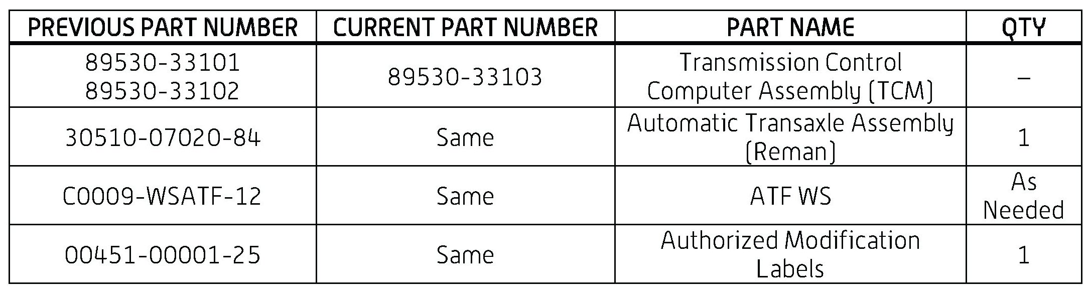 - The TCM should NOT be replaced as part of the repair procedure.