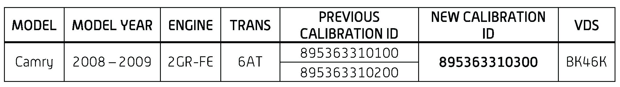 - Calibration ID(s) [Refer to the Calibration Identification Chart for the NEW CALIBRATION ID]