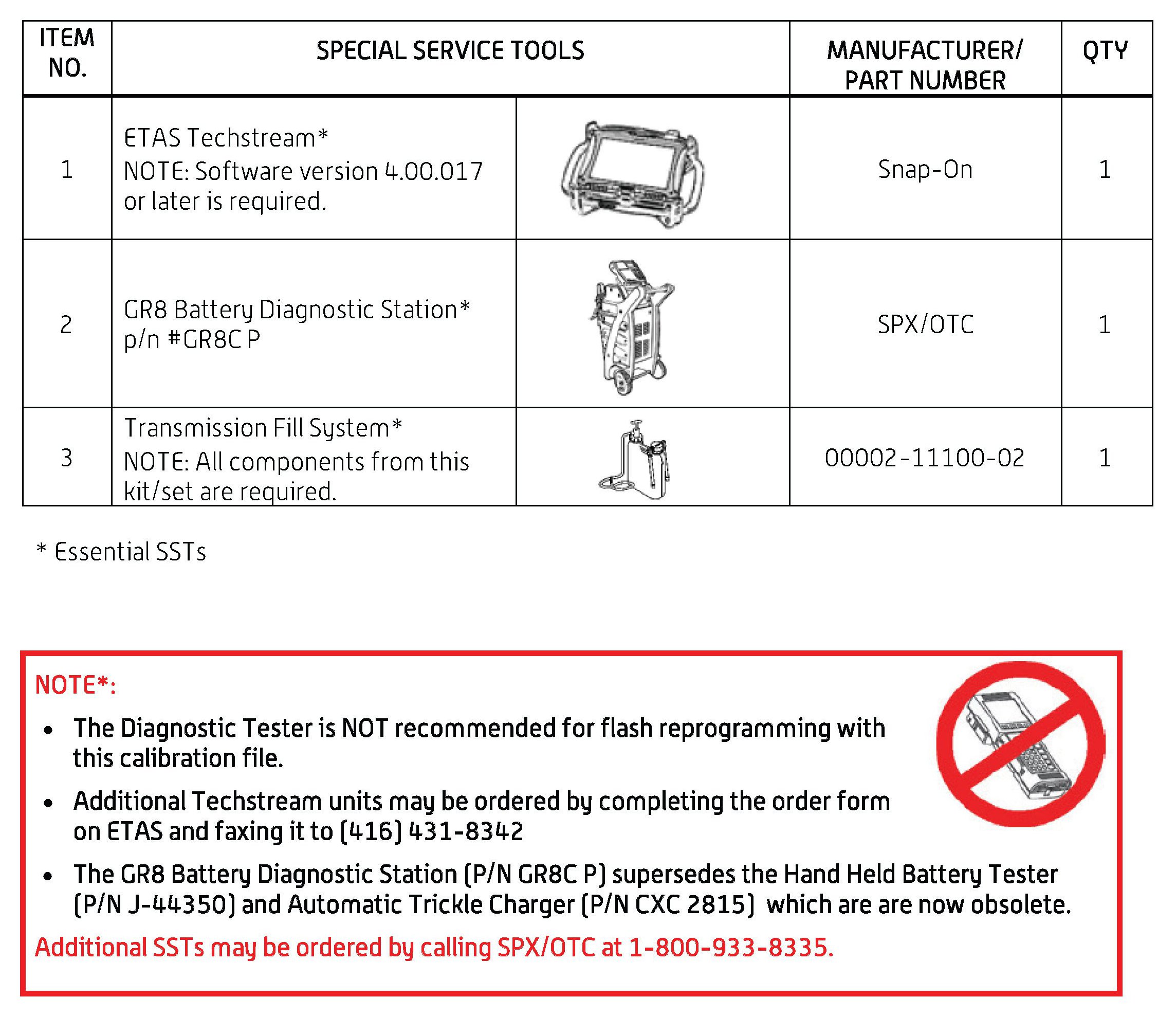 - For details on how to use the GR8 Battery Diagnostic Station, refer to the GR8 Battery Diagnostic Station Instruction Manual located on ETAS/TIS library > Tools > tools and equipment > GR8 Battery Diagnostic Station Instruction Manual.