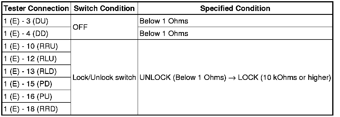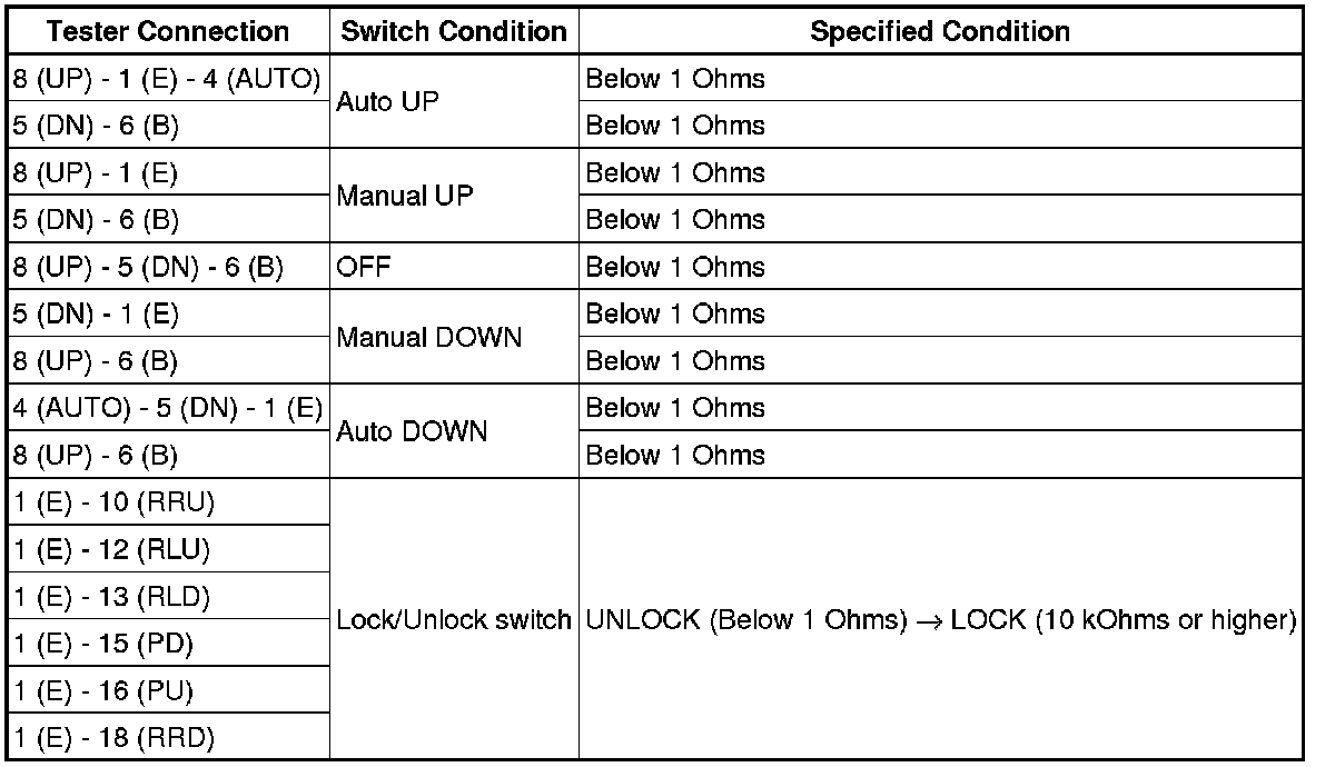 2. INSPECT POWER WINDOW MASTER SWITCH (w/o Jam Protection Function)