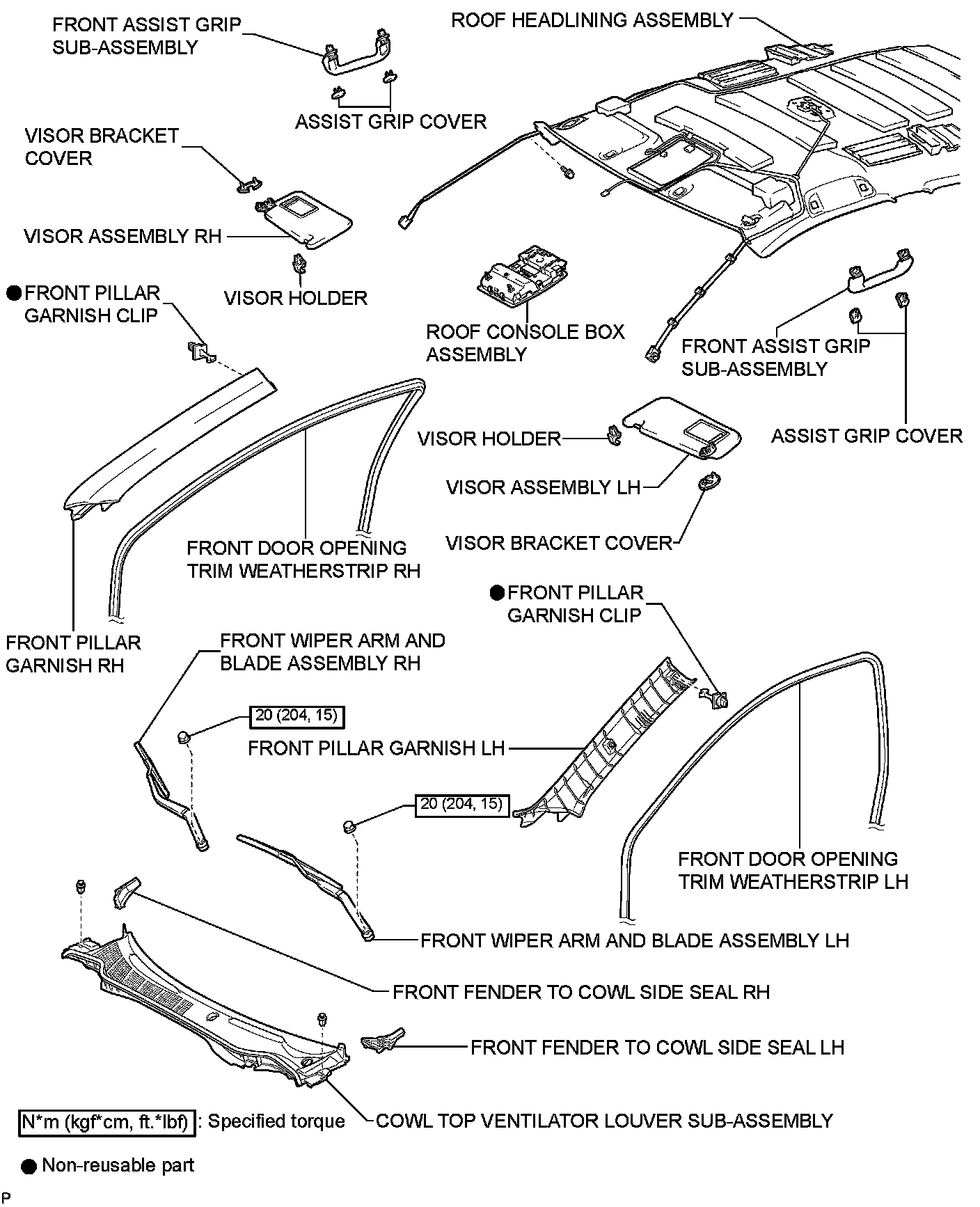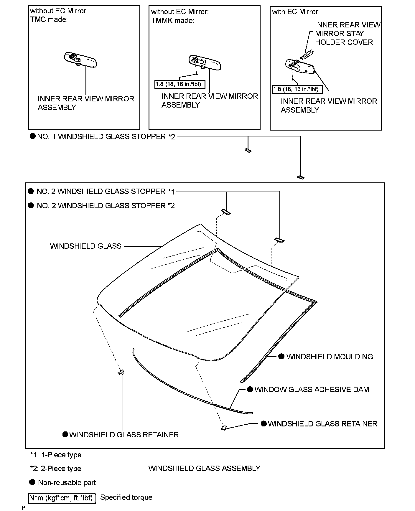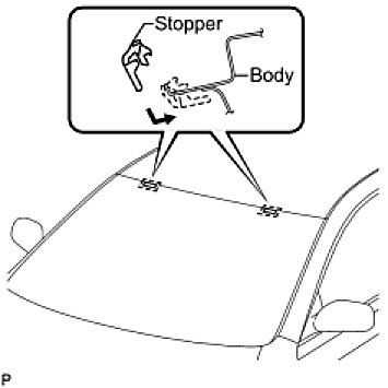 NOTE: Check that the windshield glass stoppers are attached to the vehicle body correctly.