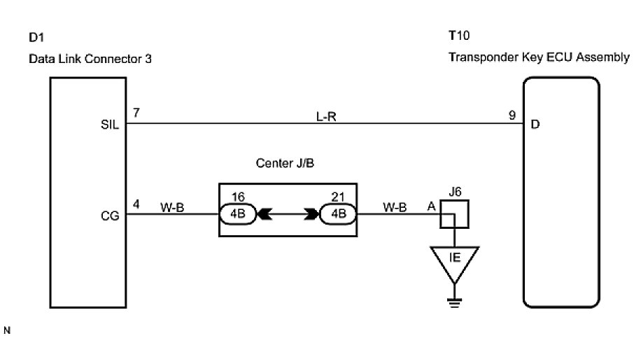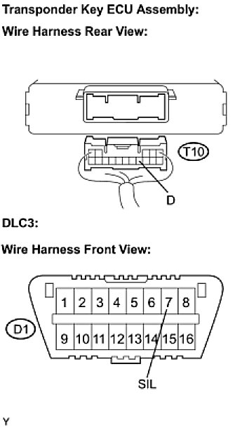 This circuit is used to read the DTCs that are output from the transponder key ECU assembly with Techstream.