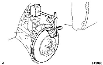 (c) If the disc runout is the maximum value or greater, check the bearing play in the axial direction and check the axle hub runout (Front Axle Hub). If the bearing play and axle hub runout are normal, adjust the disc runout or grind it on a "On-car" brake lathe.