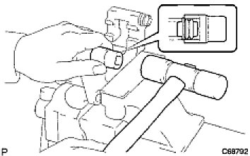 (c) Using a socket wrench (19 mm) and hammer, drive the 2 bush dust boots to the disc brake cylinder mounting.