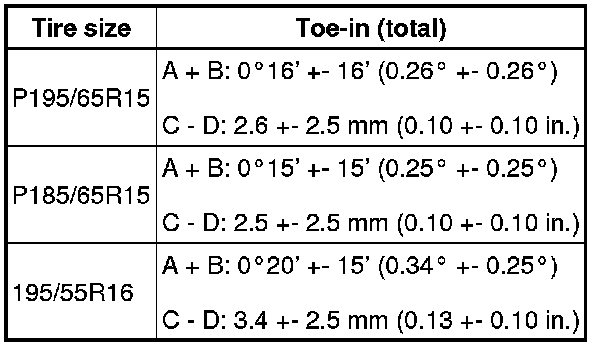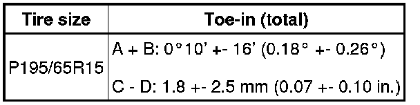 - If toe-in is not within the specified range, inspect the suspension parts for damage and/or wear, and replace them if necessary.