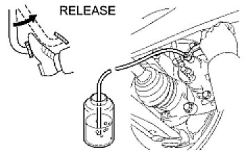 (2) When fluid stops coming out, tighten the bleeder plug and release the brake pedal.