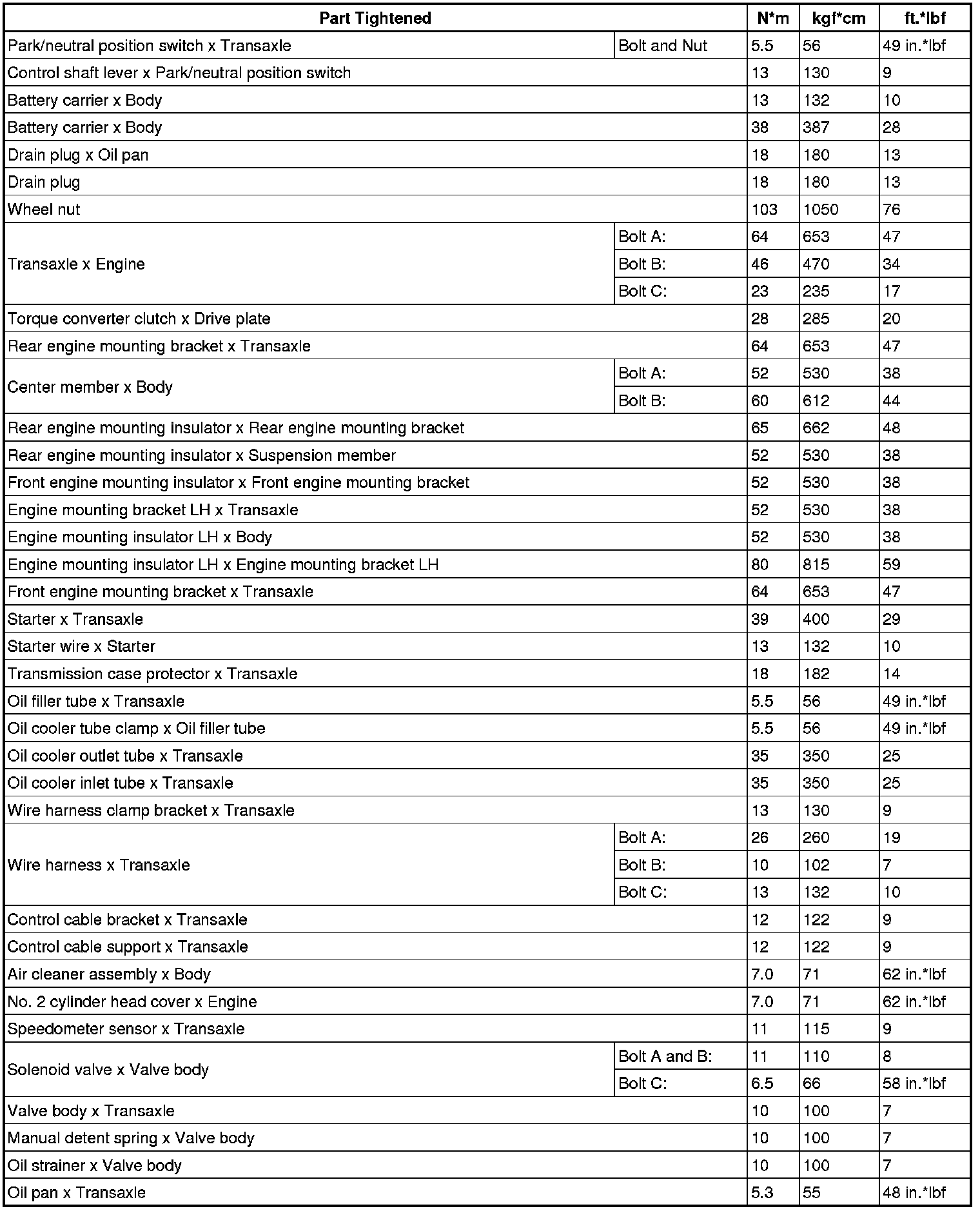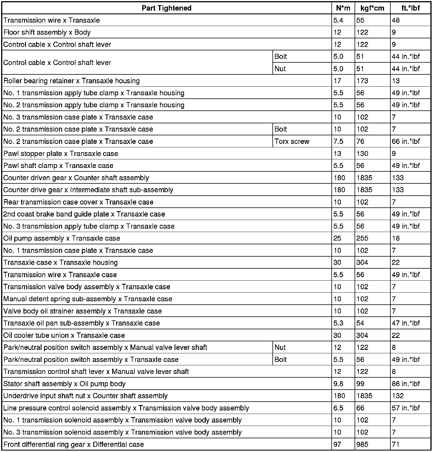 SERVICE SPECIFICATIONS: A245E AUTOMATIC TRANSAXLE: TORQUE SPECIFICATIONS