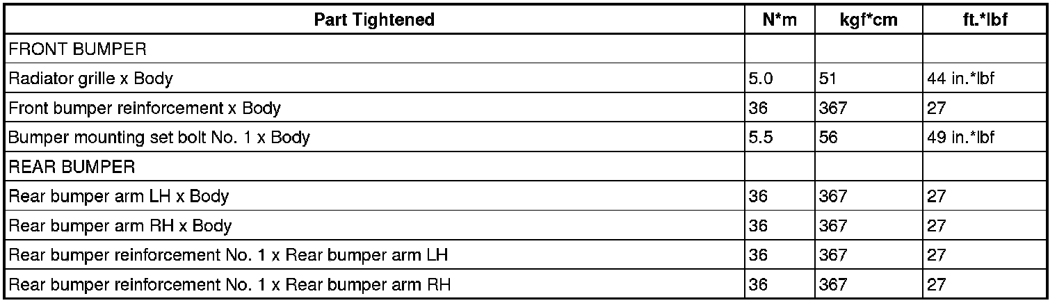 SERVICE SPECIFICATIONS: EXTERIOR: TORQUE SPECIFICATIONS