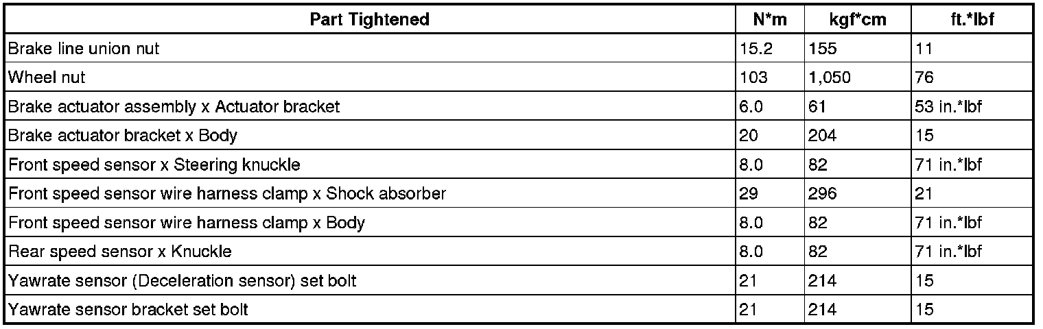 SERVICE SPECIFICATIONS: BRAKE CONTROL: TORQUE SPECIFICATIONS