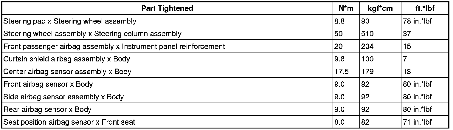 SERVICE SPECIFICATIONS: SUPPLEMENTAL RESTRAINT SYSTEM: TORQUE SPECIFICATIONS