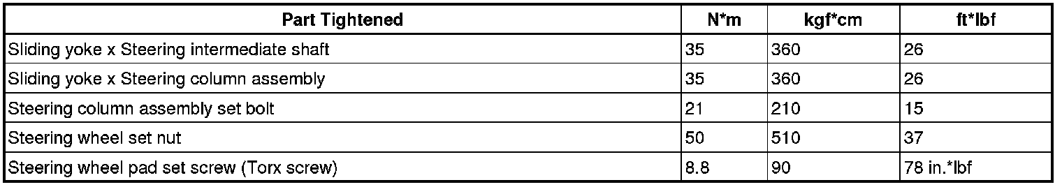 TORQUE SPECIFICATIONS