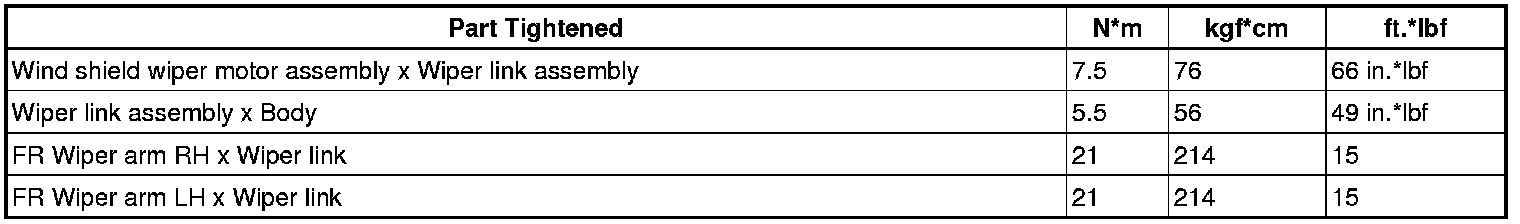 SERVICE SPECIFICATIONS: WIPER AND WASHER: TORQUE SPECIFICATIONS