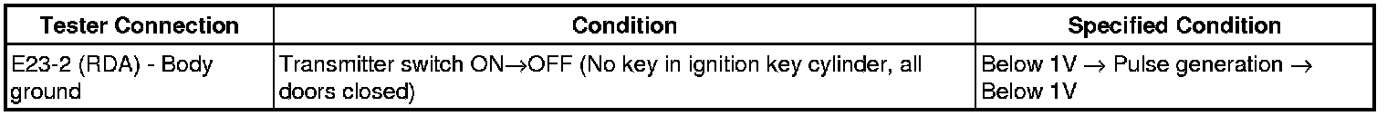 (a) When a new or normally functioning door lock control transmitter switch for the same vehicle type is held down, check that an unmatching recognition code is output.