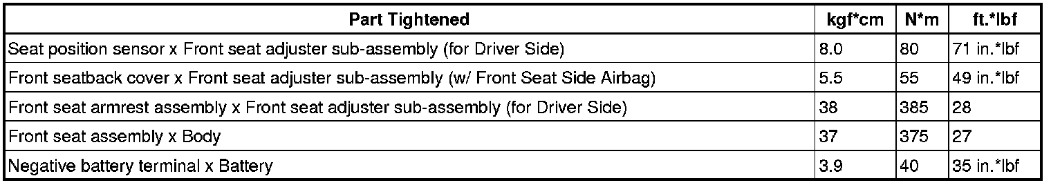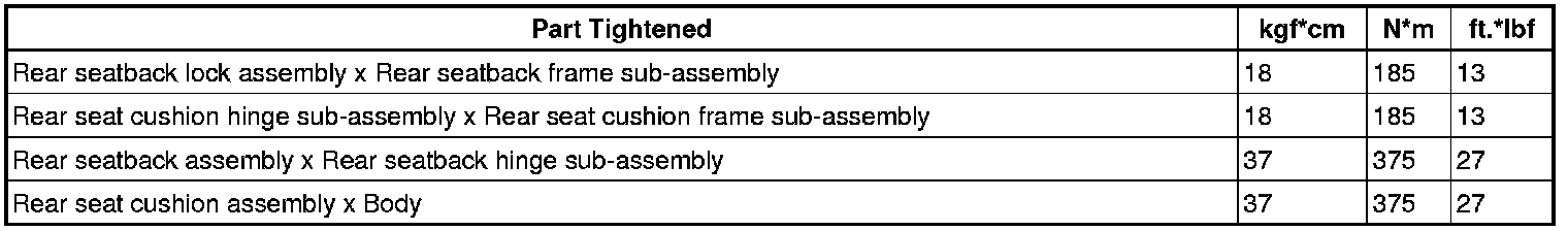SERVICE SPECIFICATIONS: SEAT: TORQUE SPECIFICATIONS