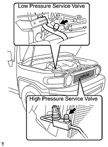 NOTE: Do not start the engine before charging it with refrigerant as the cooler compressor doesn't work properly without sufficient refrigerant. This could cause the compressor to overheat.