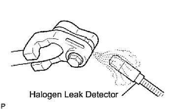 (c) Using the halogen leak detector, check the refrigerant line, especially at the connection points, for leakage.