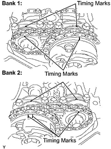 (1) Align the timing marks of the camshaft timing gears and bearing caps.