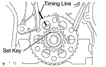 (2) Using the crankshaft pulley set bolt, turn the crankshaft to align the crankshaft set key with the timing line of the cylinder block.