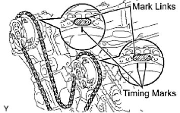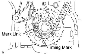 (b) Align the yellow mark link with the timing mark of the crankshaft timing link.