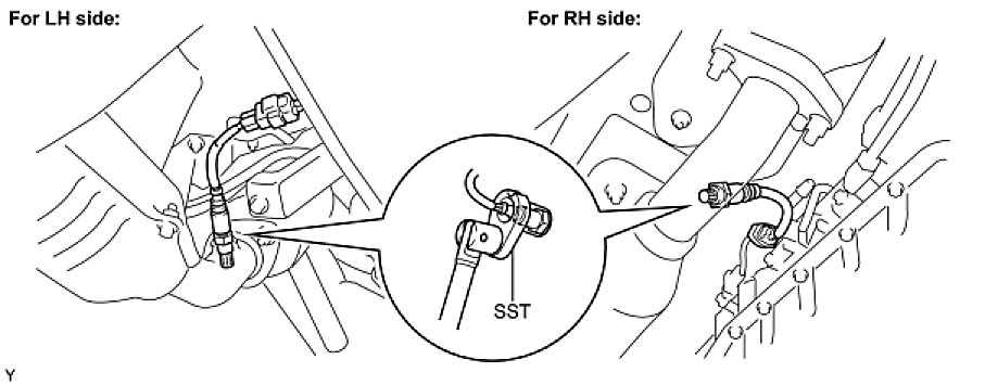 (a) Using SST, install the 2 heated oxygen sensors onto the exhaust pipe.