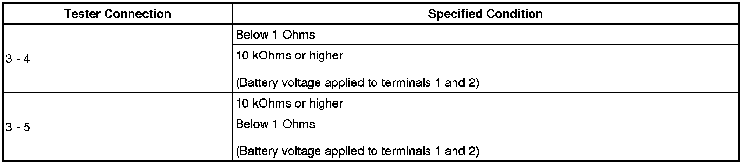 If the result is not as specified, replace the fuel pump relay.