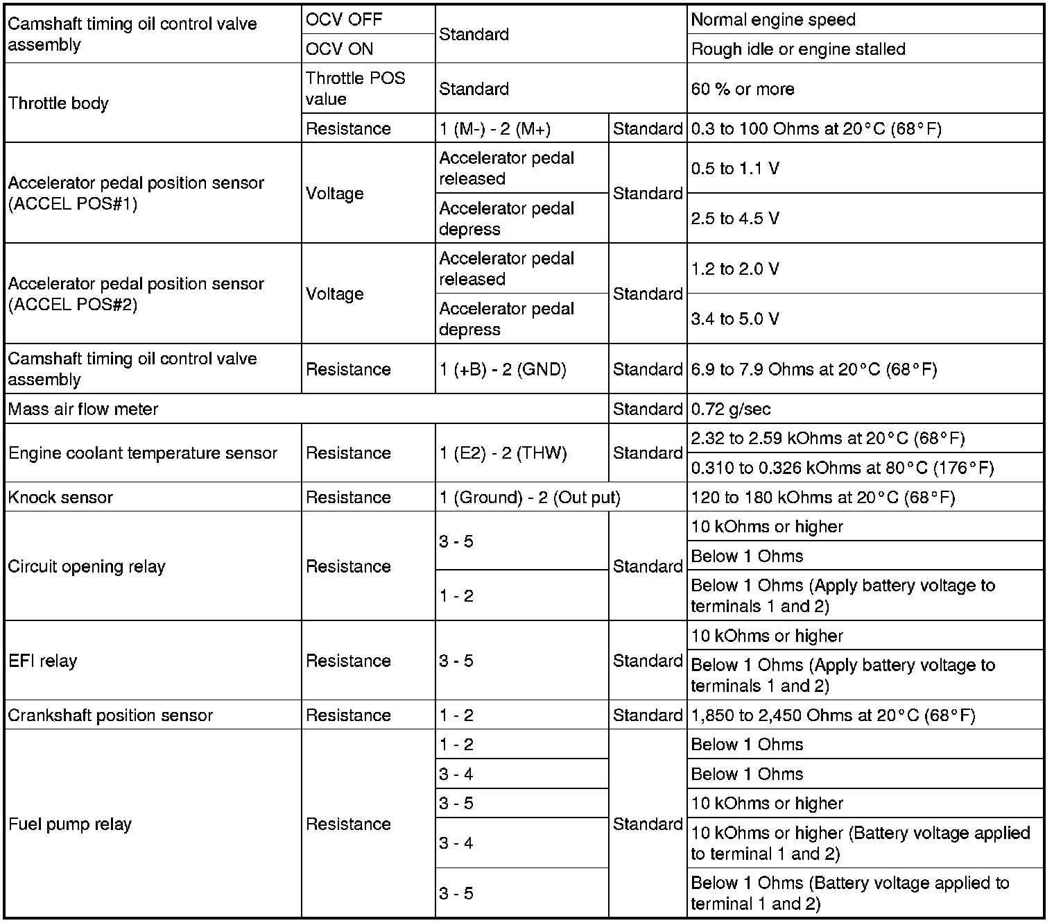 SERVICE SPECIFICATIONS: 1GR-FE ENGINE CONTROL SYSTEM: SERVICE DATA
