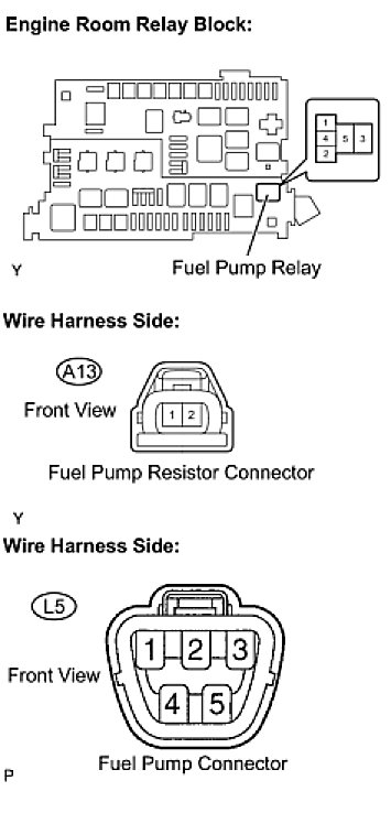 (a) Check the harness and connector between the fuel pump and fuel pump relay.