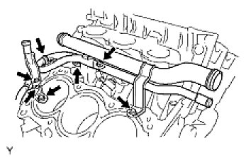 (b) Remove the 3 bolts and water outlet pipe.